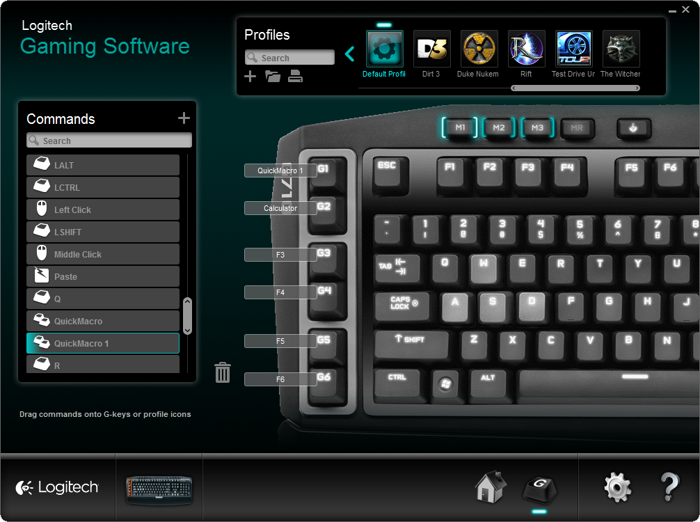 Logitechs mjukvara för makroprogrammering är väldigt lättanvänd, och innehåller flera fördefinierade OS-funktioner, bland annat flera för Windows 8. Flera Logitechprodukter kan programmeras i samma program, med fördelen att man exempelvis kan välja att reglera upplösningen på musen med två makrotangenter på tangentbordet.