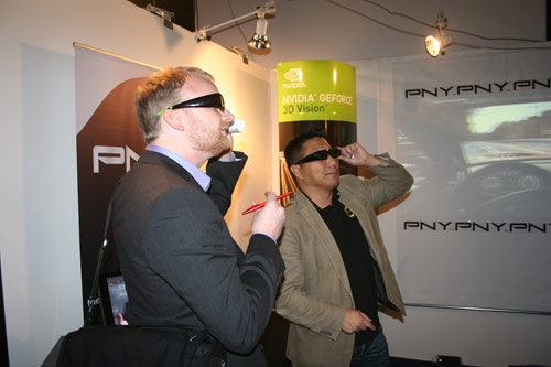 Den enda riktiga trendspaningen fanns i PNY:s monter som visade teknik för att spela spel i 3D. Alla Nvidias nya grafikkort har stöd för 3D Vision-tekniken som för närvarande kräver särskilda 3D-glasögon för att funka. Det är effektfullt och inte tokigt alls, och kan ha framtiden för sig. Men för att slå på bred front måste nog användaren slippa glasögonen. Tekniken ska dock gå att bygga in i framtida bildskärmar så att glasögonen då blir överflödiga.