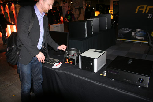 Antec hade endast några av sina mest sålda chassin utställda. Det som verkligen stack ut var den mindre versionen av spindelliknade Skeleton. I det lilla formatet såg det ovanliga chassit riktigt tilltalande ut. I ett i övrigt stilrent designat vardagsrum skulle den i alla fall som inredningsdetalj kunna komma till sin rätt.