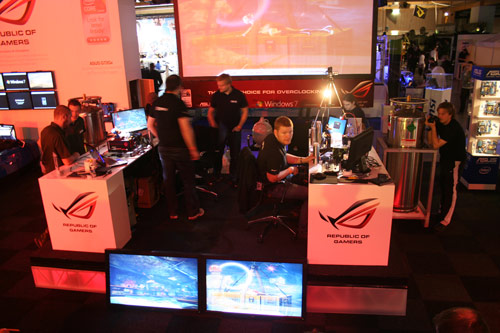 Sist och störst hade vi komponenttillverkaren ASUS där man under vinterns DreamHack event hade både överklockningstävlingar och uppvisningar i World of Warcraft. ASUS hade en av de största montrarna på mässområdet och med läktare för de som vill följa överklockningstävlingen ASUS ROG Showdown, eller se medlemmar ur World of Warcraft-klanen Paragon raida Live.