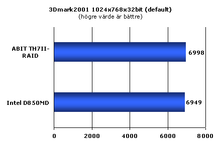 Eftersom 3Dmark2001 är lite mer krävande för grafikkortet borde prestanda skillnaden vara ändå mindre.