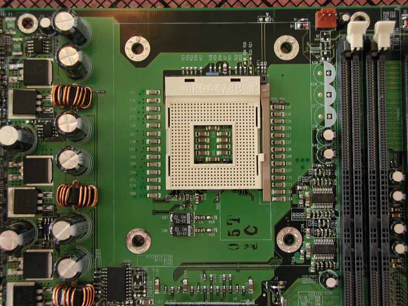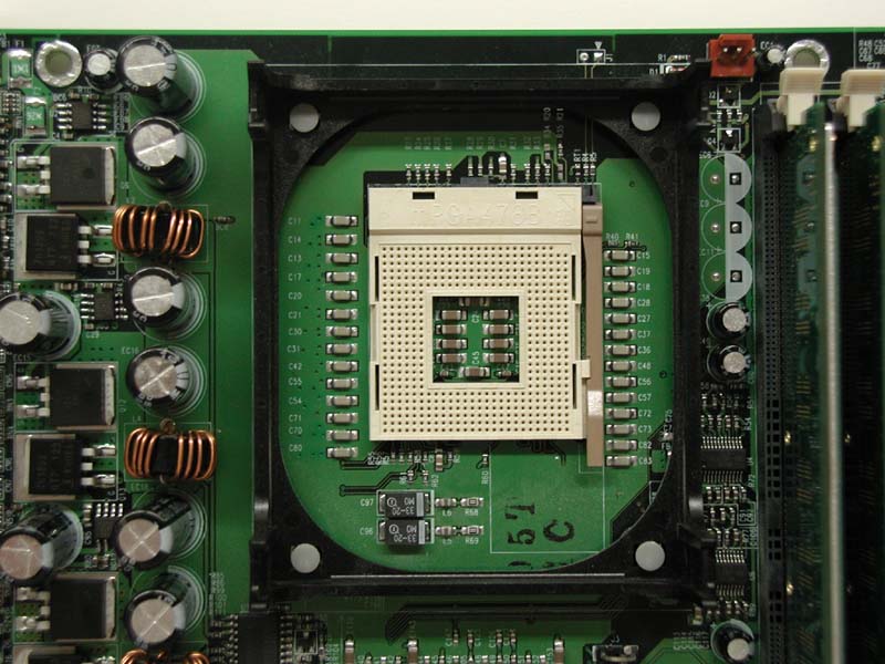 Utöver detta är det inga större ändringar i designen. Bredvid IDE enheterna sitter två av de tre nödvändiga strömkontakterna på moderkortet. Den tredjesom är 12v kontakten sitter till vänster om chipsetkylflänsen.