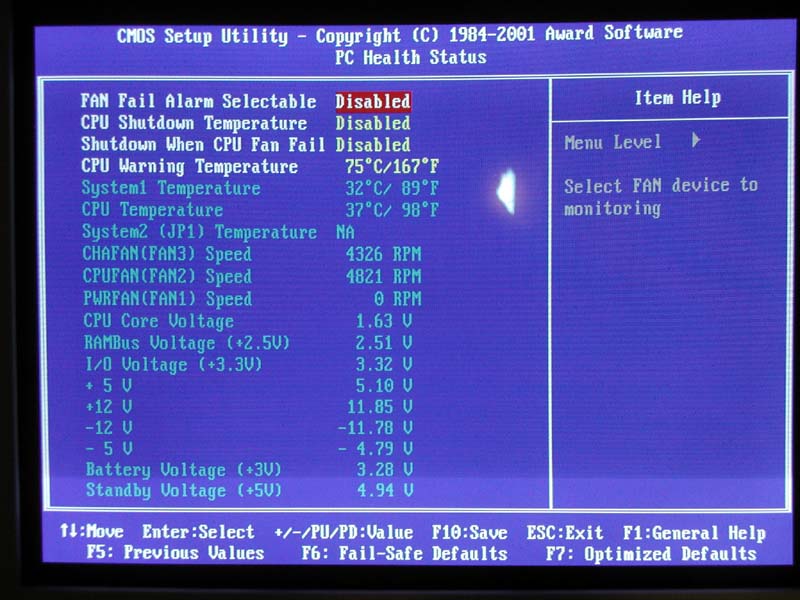 I PC Health Status menyn har du värden för processor/system temperaturer och du kan även se hur snabbt fläktarna du kopplar till moderkortet snurrar så om en fläkt stannar finns det möjlighet för en larmsignal att gå igång som varning.