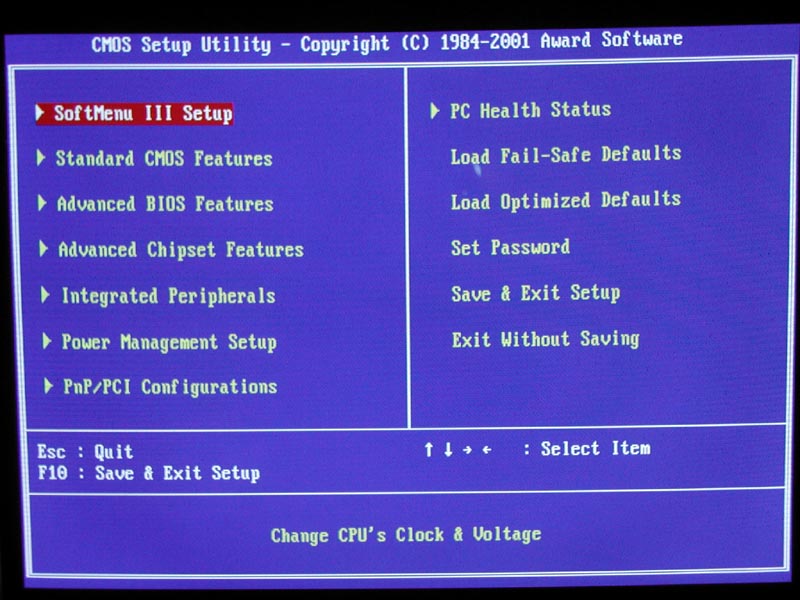 ABIT var de första med helt jumperlösa moderkort och deras Soft Meny känner de flesta till. ABIT har vidareutvecklat deras Soft Meny och har numera både Soft Meny II och Soft Meny III versioner. Av någon anledning har de inte använt den nyare och mer innehållsrika Soft Meny III på alla deras nya moderkort men TH7II korten är utrustade med just den versionen. Själva biosen är baserad på Award och ser ut så här.