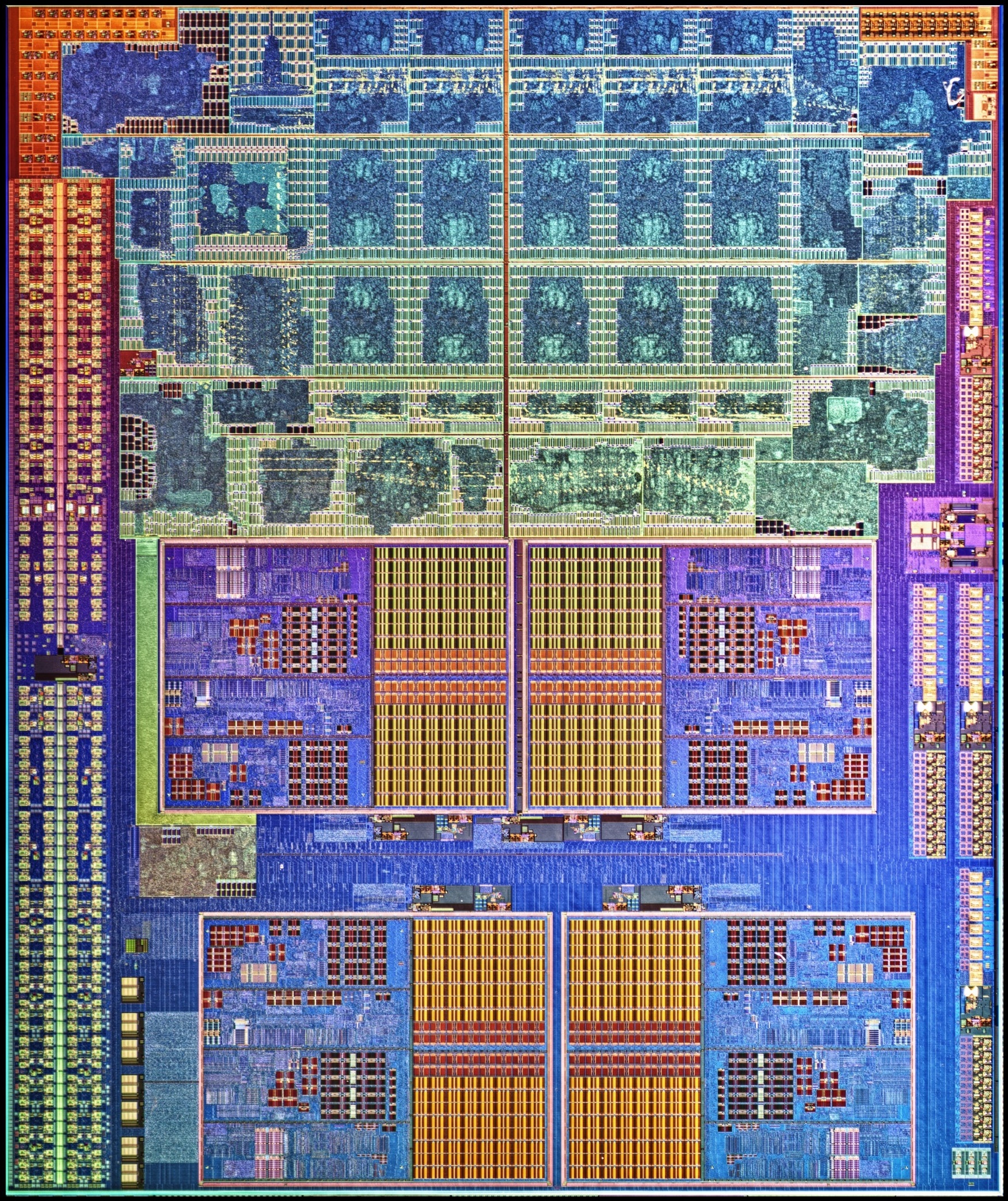 Något annat värt att nämna om arkitekturen är företagets annorlunda fokus mot Intel. Llano och Sandy Bridge ligger på 228mm² respektive 216mm² vilket faktiskt gör det till en intressant jämförelse. Båda företagen har en nordbrygga som tar upp ungefär 30% av kretsytan och där slutar likheterna. Intel har sitt fokus på bevisligen rejält kraftfulla processorkärnor i Sandy Bridge där över 50% av kretsen tas upp av processorn och dess cache-minne, medan grafikkretsen står för ungefär 20%.