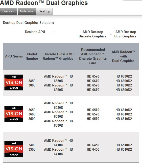 Det här demonstrerar hur Dual-Graphics ser ut med alla dess olika kombinationer och när man har två i CrossFire får de även ett nytt namn. Detta är precis som AMD VISION till för att underlätta för systembyggare, OEM-tillverkare och slutligen försäljaren att plocka ut rätt system och rekommendera rätt produkt till slutkonsumenten.
