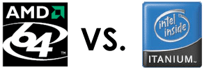 AMD i sin tur har ofta använt sig av en "här och nu"-metod där man kanske tänkt mindre på framtiden utan istället satsat hårt på nuet. Även denna taktik har visat sig vara mycket effektiv och AMD har genom ren råstyrka hållit sig klart konkurrensmässiga med deras K7-arkitektur (Athlon). På senare tid har det dock blivit svårare tider för AMD då K7-arkitekturen visat fler och fler ålderstecken medan Pentium 4 fortsatt sin utveckling.
