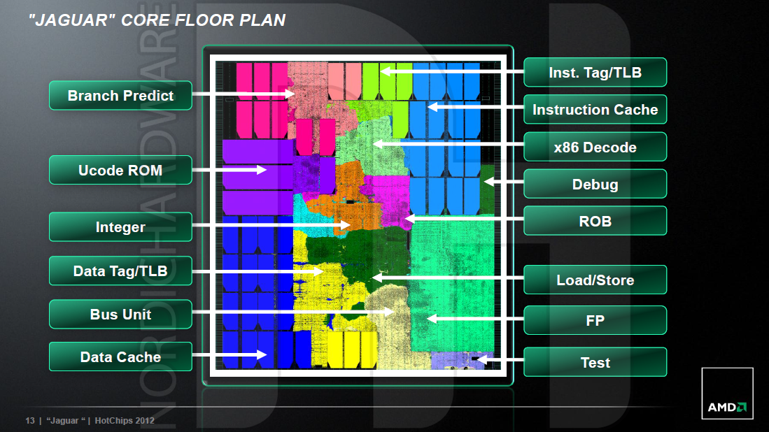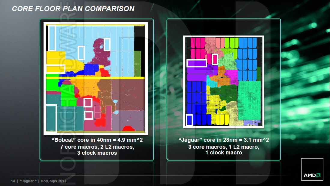 Det är så här ARM arbetar, vilket gör att deras tillverkningspartners på förhållandevis kort tid kan ta fram nya systemprocessorer baserade på ARM:s senaste arkitekturer. Problemet ligger i att viss logik måste anpassas för en specifik tillverkningsteknik och här är ytterligare en punkt Jaguar blivit bättre på.