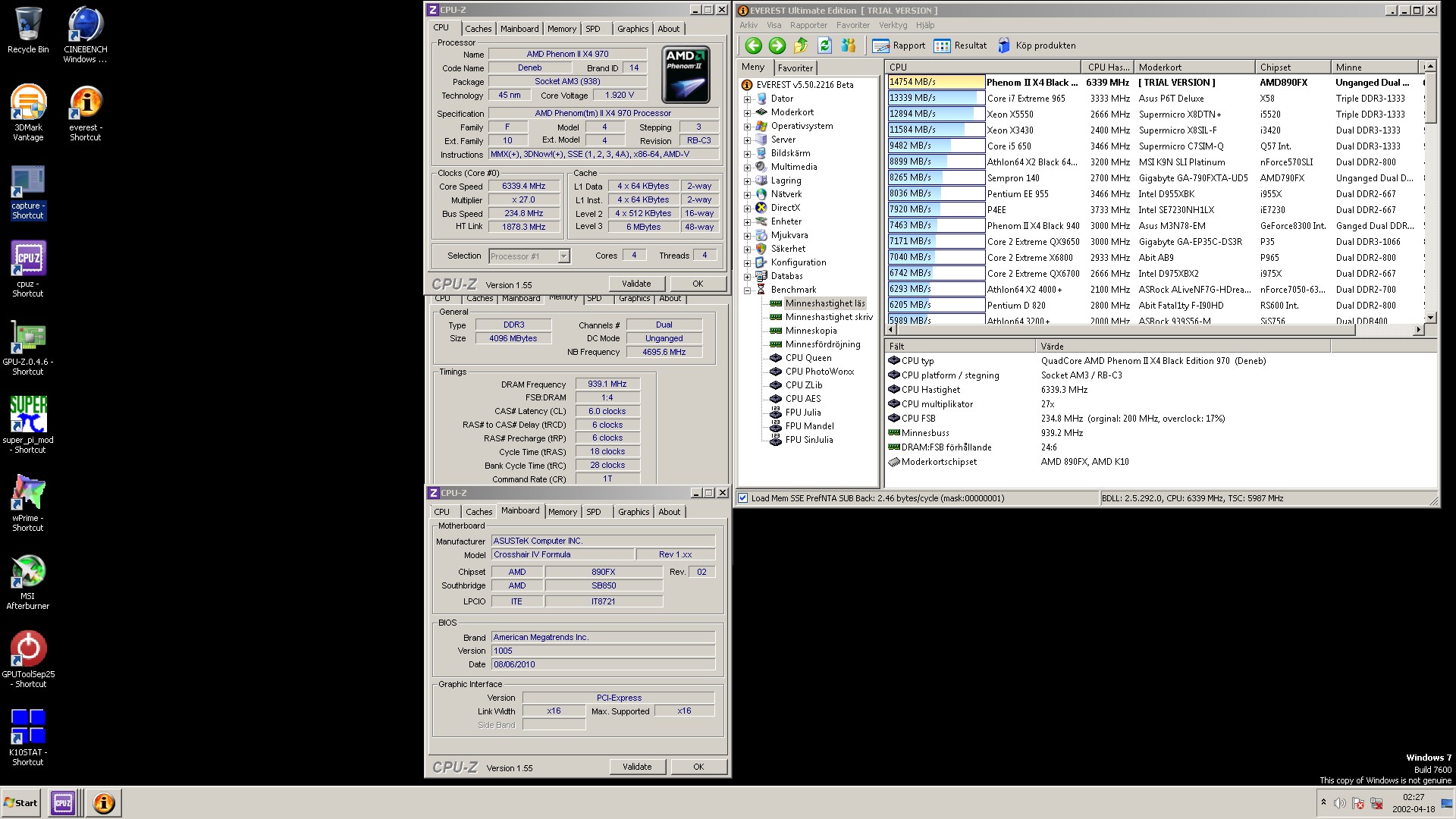 Vi och framförallt jag är dock inte speciellt intresserade av att gå samma väg som alla andra, så vad vi har idag är en överklockningsrapport med AMD Phenom II X4 970 under flytande kväve på lanseringsdatumet. ASUS står med sitt Crosshair IV Formula för moderkort och Corsair med sina utmärkta GTX2-minnen för bandbredden.