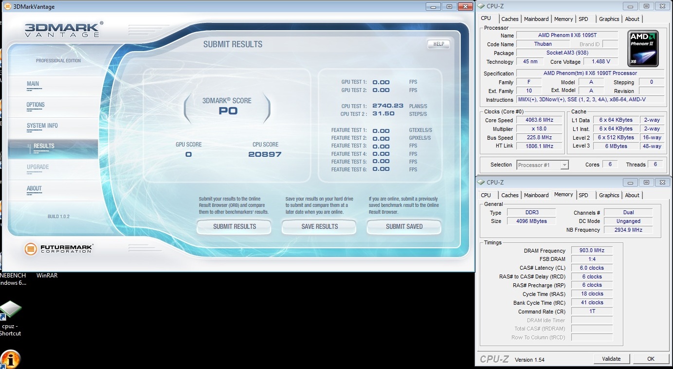 Nordbryggan visade sig gladeligen gå upp till 3GHz jämnt utan några större ändringar, vilket är en 50-procentig överklockning bara här. Utöver detta visar sig minneskontrollern i Thuban vara ganska villig, vi nådde under samma tester 1846MHz CL6 med våra Corsair GTX2, här finns även rum för förbättring. Efter detta valde vi att se var gränsen gick för Phenom II X6 1090T med en smått löjlig standardkylare i 3DMark Vantages CPU-test.