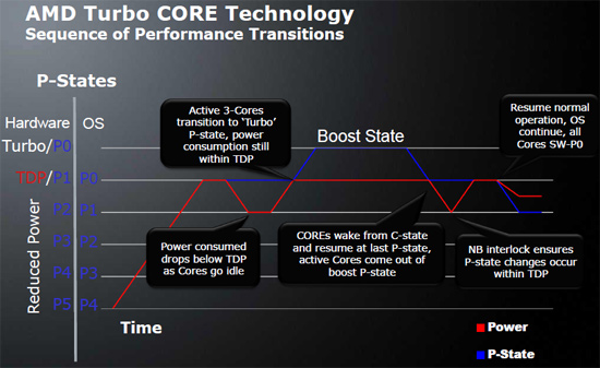 Tekniken gör det möjligt för AMD att öka klockfrekvensen med flera hundra megahertz på de aktiva kärnorna, utan att strömförbrukningen går över de specificerade 125W då övriga kärnor ligger i vila.