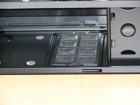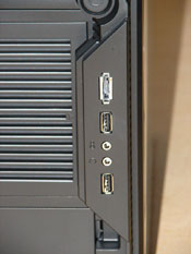 The door is pretty much the same as with previous [fixed] models. It opens 180 degrees and even though it’s plastic, it’s rigid and won’t bother you that much. On the front you will find two USB ports and one eSATA port along with audio in and out jacks.
