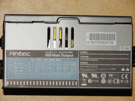 | Power supply | Antec NeoLink 650P 650 W Antec NeoLink 550S 550 W |