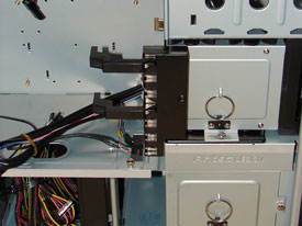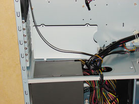 The overall layout of the interior is very familiar and there’s really not much to add that we haven’t already said about the P182. All of the fans are powered by regular 4-pin molex connectors, and the USB and firewire connectors on the front use the standardized head connectors that you connect to the USB and firewire pins on the motherboard. The pin layouts of these are specified in the manual if you want to be certain and compare them to the pin layouts on the motherboard.