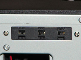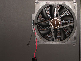 On the other side of the case there’s the Antec Big Boy 200 mm fan. This huge piece of cooling is actually fairly quiet and still capable of moving more than plenty of air. The power comes from a 4-pin molex connector and has a rpm controller with the same three settings as the other TriCool fans.