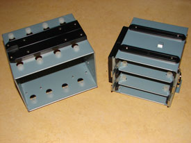 Here we see the two harddrive bays and the small box for screws and other things that’s seated on the back of the upper harddrive bay. They have the same rubber dampenings as we’ve seen with the P18X models.