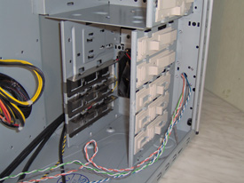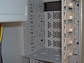 På 5,25″ platserna är det skruvlös funktion som gäller fast du måste dock skruva fast skenorna på enheterna som ska installeras. Att installera diskettstation eller 5,25″ enhet är inga större problem då frontarna är enkla att ta bort efter att man öppnat luckan. I nedre delen av fronten där fläktarna i fronten (förutsatt att du installerat fläktar där) drar in luft så har man satt ett dammfilter, detta dammfilter måste du dock ta loss hela fronten för att rengöra men de har valt att använda sig av lite lättare anslutningar för att hålla fast fronten vilket gör att man slipper slita och ta i så man råkar he sönder något. När det gäller de vanliga kortplatserna så har man valt att använda sig av den gamla vanliga skruvmetoden.