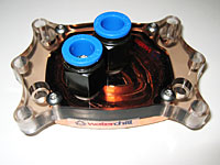 av plexiglas med snabbfästen för en 10mm (3/8″) slang. Den urfrästa