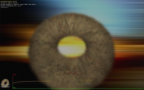 Utöver munken med ådror och hår kan ni på screenshoten utläsa att testet gått i fem minuter, ni som har testat vet att grafikkortsfläkten brukar gå på högvarv vid det laget. Samtidigt kan vi utläsa att temperaturen är 79°C, vilket i sig inte är dåligt, men samtidigt inte det mest imponerande, den titeln tar fläkten. ASUS EAH4770 Formula är förvisso hörbar på vår öppna testbänk med fläkten på maxvarv, men bara om vi verkligen försöker höra efter, men vi skulle klassa kortet som väldigt tyst, vilket gör att vi till slut motvilligt kan acceptera utseendet på kylaren.