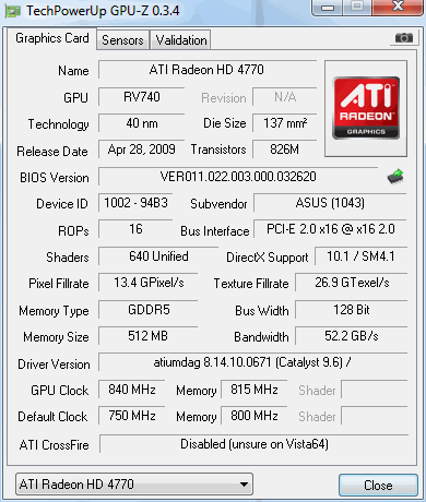 Motståndet för dagens testkort är nVidias närmaste motstånd i samma prisklass; GeForce 8800GT/9800GT/GTS 250, välj själva då kortet nylanserats i omgångar de senate åren. Även ett HD 4870 med 1GB RAM är med i leken för att utröna om 512MB VRAM är nog i dagsläget. Ett HD 4850 fanns också i testlabbet, men detta valde att inte vilja vara med längre efter ett haveri. På nästa sida kikar vi närmare på överklockningspotentialen hos ASUS EAH4770 Formula.