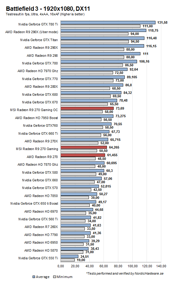 Asus har med sin ganska beskedliga fabriksöverklockning ingen möjlighet att hänga med GTX760-konkurrenterna från MSI och Gigabyte men med en prestandaskillnad på mellan 2 till 3,5 procent är det knappast något förrödande nederlag. Intressant är samtidigt att äldre syskonet Asus GTX660 Ti DirectCUII Top hänger med riktigt bra i prestandarejset, tack vare högre beräkningskapacitet och en rejäl fabriksöverklockning av GTX660 Ti.
