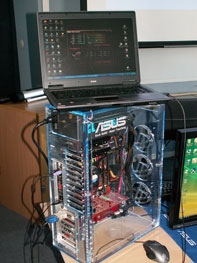 Man började ganska lungt med att gå igenom mycket av det man visade upp på Computex-mässan vilket också är produkter och tekniker vi rapporterat om vid flera tillfällen. Bland annat grafikkortet ASUS MARS GTX295 som med hjälp av Marcus "Kinc" Hultin slagit en trio av världsrekord redan innan de första korten dykt upp på marknaden. ASUS har med detta kort visat vad som är möjligt med dagens teknik och påpekade att MARS inte bara är det snabbaste, utan även det dyraste grafikkortet på marknaden. Vi har efter ASUS MARS presentation fått reda på att riktpriset för deras specialutvecklade GeForce GTX 295 grafikkort ska landa på 13 999 SEK. Enligt ASUS ska flera svenska kunder visat intresse för korten, mer eller mindre oavsett prislapp. Men man lär få fajtas om de 1000 exemplar som ASUS tänkt tillverka.