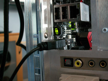En annan funktion som ASUS var stolta över är ROG Connect. Där man modifierat en vanlig USB-ingång på moderkort för att med en enkel USB-kabel (utan strömledarna) kunna koppla ihop systemet med en bärbar dator. Idéen fick man enligt egen utsago från filmen Fast & Furious 4 där man trimmar bilarna med hjälp av sina bärbara datorer. Mycket riktigt har ASUS även tagit fram en mjukvara som gör det möjligt att överklocka Maximus III Formula, och andra kort med denna ROG Connect kontakt, från en bärbar dator. En rolig grej kan vi hålla med om, men trots ordentlig tankeverksamhet har vi ännu inte lyckats komma på en vettig anledning till att verkligen använda funktionen. ROG Connect-ingången kan inaktiveras genom en knapp på I/O-panelen, vilket förvandlar den till en vanlig USB-port.