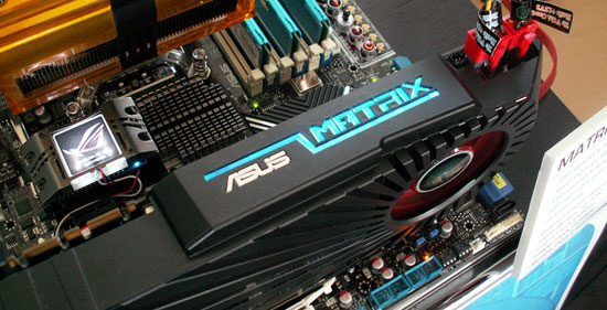 Den nya Matrix-kylaren agerar även belastningsmätare då den lysande Matrix-loggan ändrar färg beroende på kortets belastning, från grön i viloläge upp till röd vid full belastning. Det finns fem olika färger som ska ge en visuell status för kortet direkt i chassit.