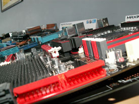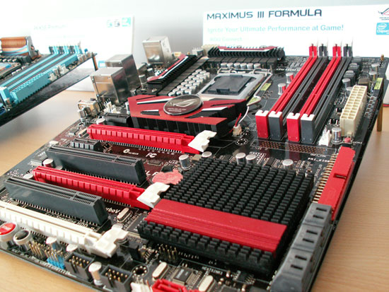 Huvudpunkten i ASUS presentationer var dock att avslöja närmare hur man förbereder sig på Intels Core i5 och LGA1156 plattform. ASUS har flera Intel P55 baserade moderkort på väg och toppmodellen Maximus III Formula är flaggskeppet ur Republic of Gamers familjen. Moderkortet presenterade sig redan tidigare i veckan på lite bilder i våra nyheter, men nu fick vi klämma och syna kortet lite närmare.