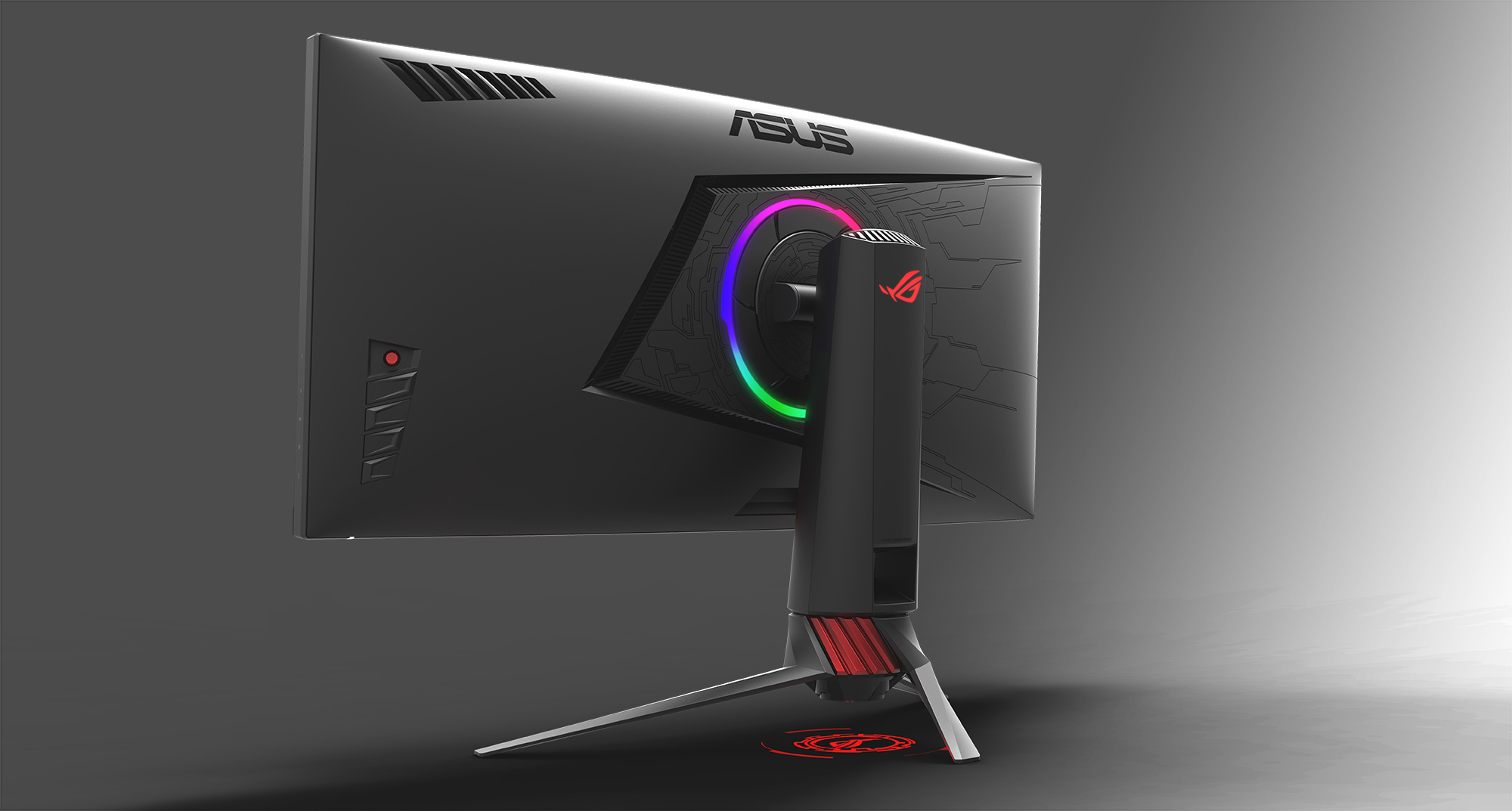 Likt andra nya produkter i Asus ROG Strix-familj är det samtidigt även fokus på RGB-ljus och tekniken Aura Sync. Skärmen har en RGB-ljuslist på baksidan som kan synkroniseras med andra Aura Sync-produkter som moderkort och kringutrustning. Själva skärmen har anslutningar för HDMI 2.0, HDMI 1.4, Displayport 1.2 samt en hörlursutgång. Man hittar även en USB 3.0-port med dubbla utgångar på baksidan av skärmen.