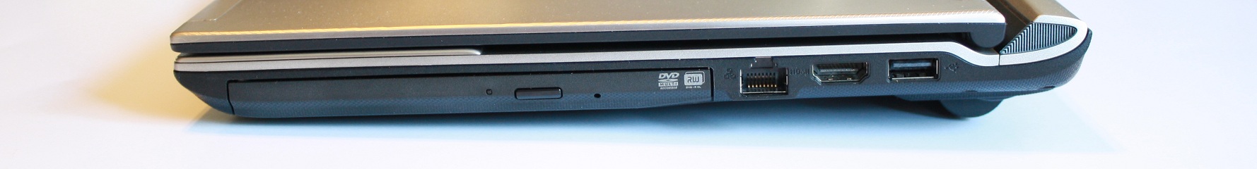 På dess högersida hittar vi en USB 2.0, en HDMI och en RJ45 LAN (Ethernet). Här hittar vi även den optiska läsaren, som vi har en kommentar om. Det går nämligen att vicka lite på luckan, men det är ingenting vi skulle säga förstör helhetsintrycket av datorn.