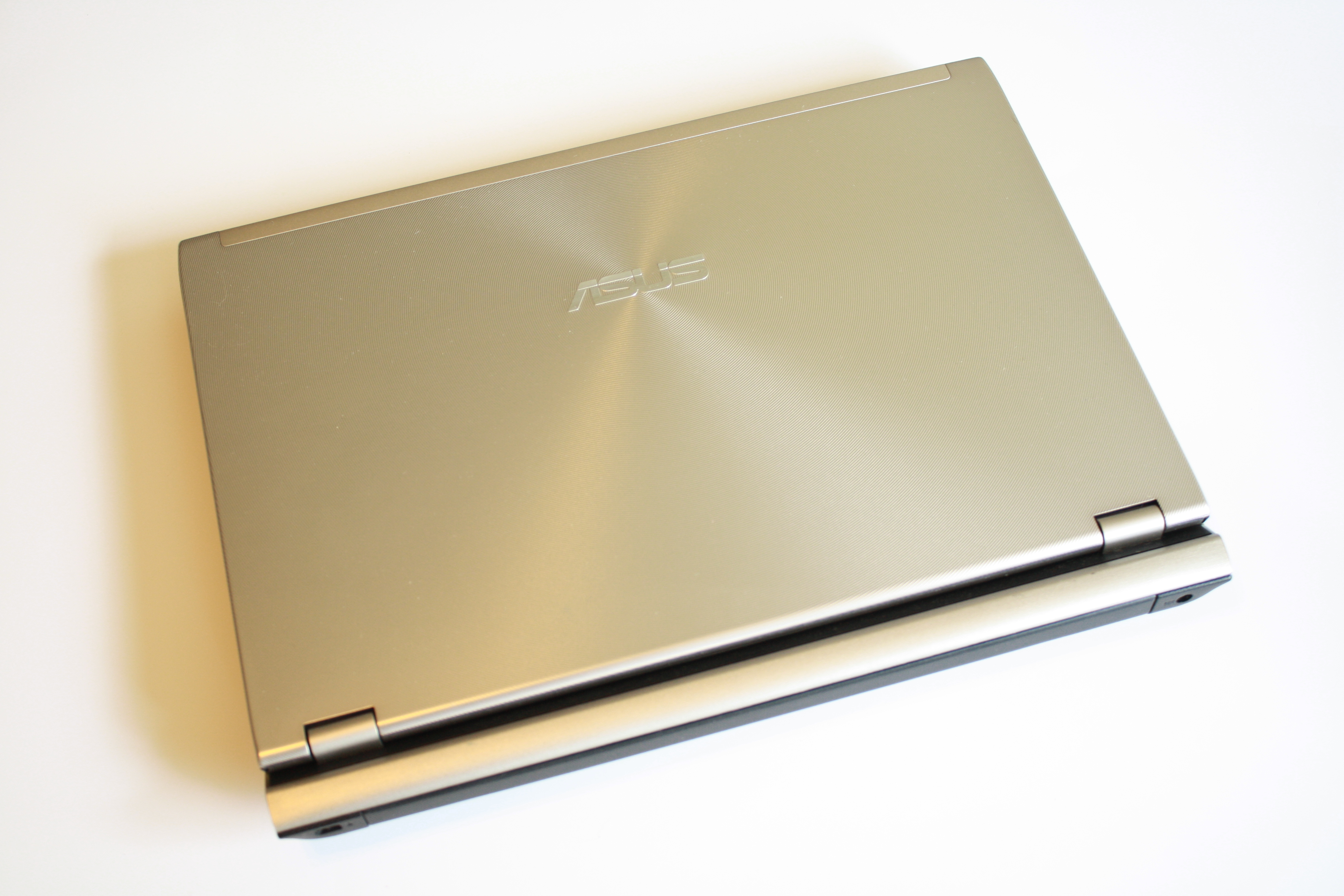Ovansidan har ett ringformat mönster som går ut från ASUS-logotypen, någonting som inte står ut eller märks av först man ser datorn på nära håll. Hurvida det ringformade mönstret är snyggt, är för var och en att avgöra. Men mönsterdesignen för med sig en positiv bieffekt, vilket är att det inte fastnar fingeravtryck på datorn så for man tar på den. Det känns inte som att skärmen har den bästa passformen för datorn, då det saknas någon milimeter i bakkant av skärmen. Det här kan märkas av när man tar tag i datorn baktill beroende på hur känslig man är för sådana saker. Men när vi väl fäller upp skärmen sitter den på sin plats utan att glappa i sina fästen.