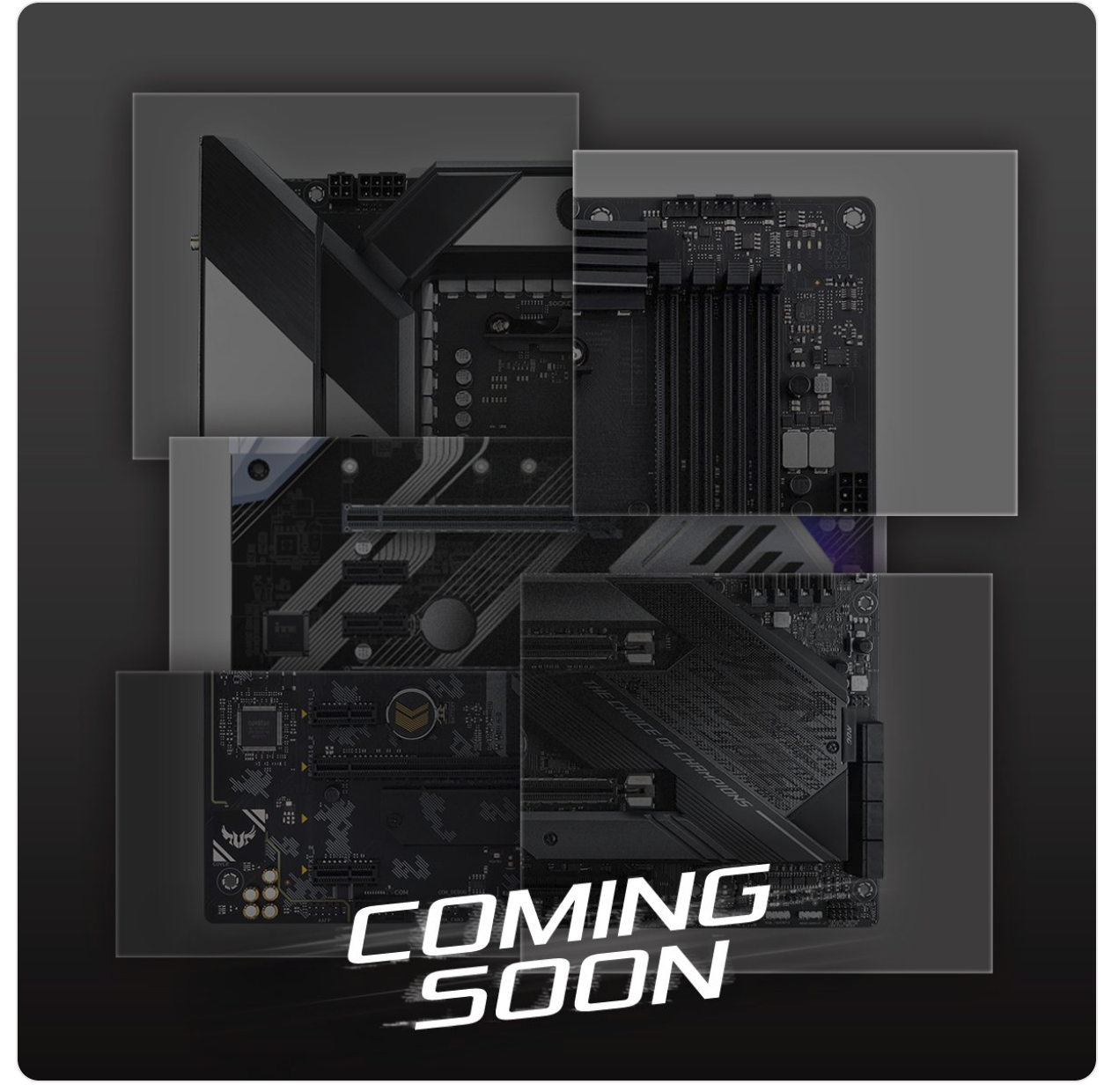 I det nedre högra hörnet ser det ut att vara ett kommande moderkort ur ROG Strix-serien, däremot finns det av bilden att döma ingen fläkt över styrkretsen. Något som skulle göra moderkortsmodellen till en av de första utan en sådan kylanordning då de flesta moderkortstillverkare valt att placera en fläkt över de värmespridare som placeras på X570-styrkretsen. Detta då styrkretsen är bekräftat att dra upp till 15 watt och således kan generera en hel del värme.