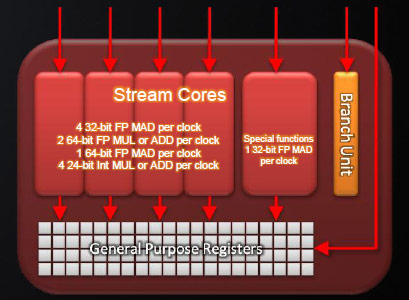 AMDs optimerade SIMD-kärna från RV870, 20 stycken ryms i Radeon HD 5870 GPUn