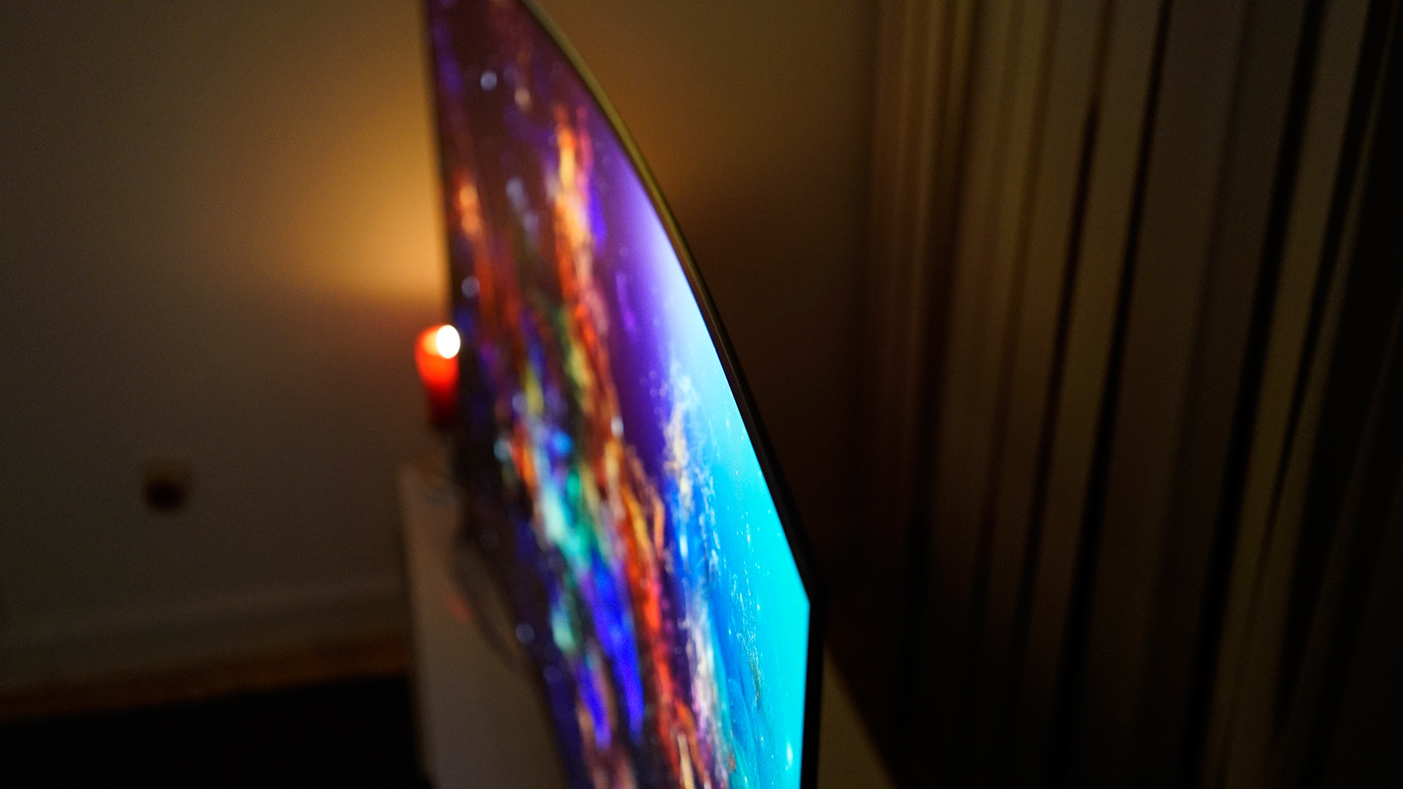 Något som är lika surrealistiskt som den tunna böjda formen är när du första gången slår på TV:n. Du vet nämligen inte om TV:n verkligen är påslagen eller ej, skärmen är utan signal helt bäcksvart och efter tiotalet års användning av konstant påslagen bakbelysning är det svårt för hjärnan att förstå. Din erfarenhet säger dig att en TV inte ska vara helt svart när den är påslagen, du förväntar dig att den är mörkgrå. Som plasma-användare kan du varit nära en riktig svärta, inte minst med Pioneers beryktade Kuro-modeller men de flesta har troligtvis inte sett något som kan jämföras med OLED.