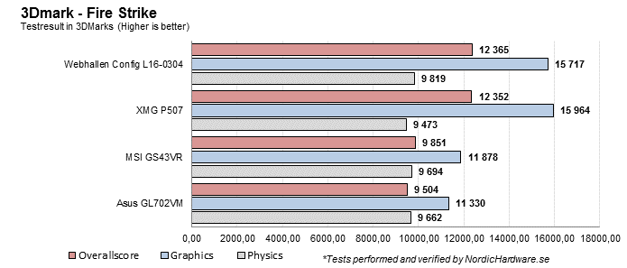 I och med att samtliga datorer har samma processor så är fysikprestandan nästan identisk. Vi ser däremot som väntat en tydlig fördel i grafikprestanda för modellerna med Geforce GTX 1070.