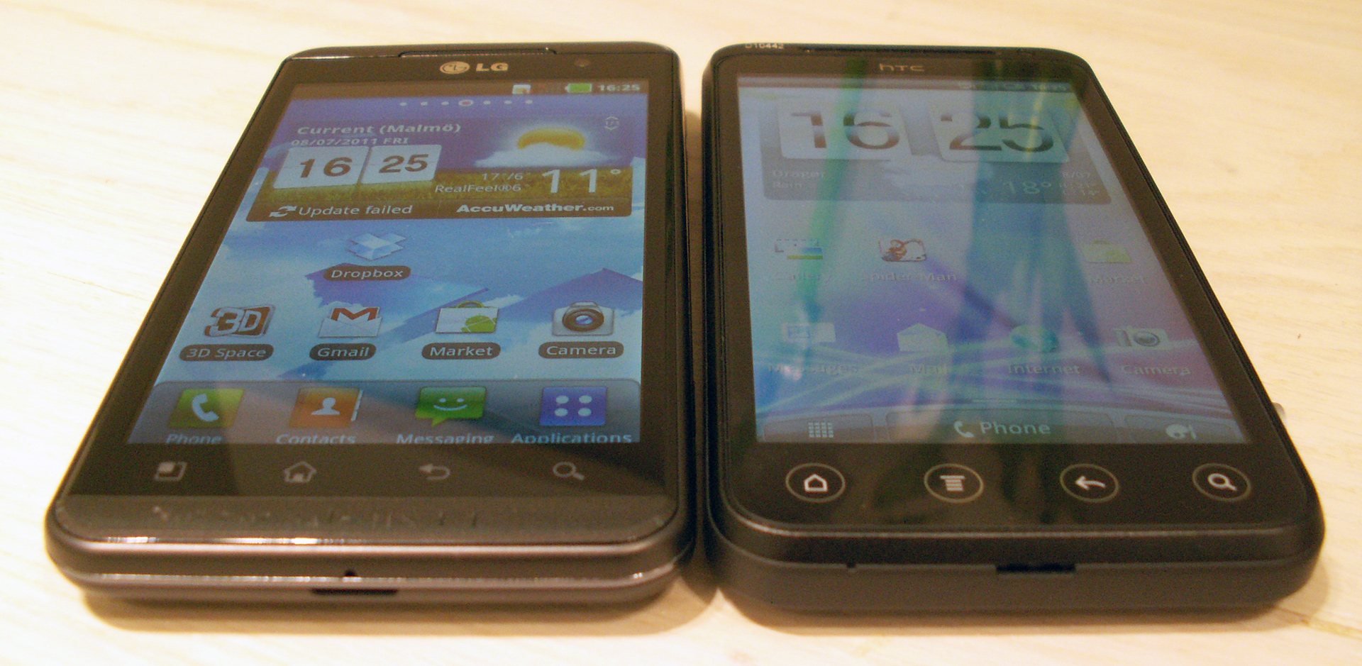 Både HTC Evo 3D och LG Optimus 3D använder sig av skärmar på 4,3 tum och teknik som möjliggör stereoskopisk 3D utan glasögon. Men ungefär här slutar likheterna och allt från fysisk design, storlek, skärmupplösning och funktionalitet skiljer sig åt. För att göra jämförelsen lättare har vi samlat deras specifikationer här nedan;