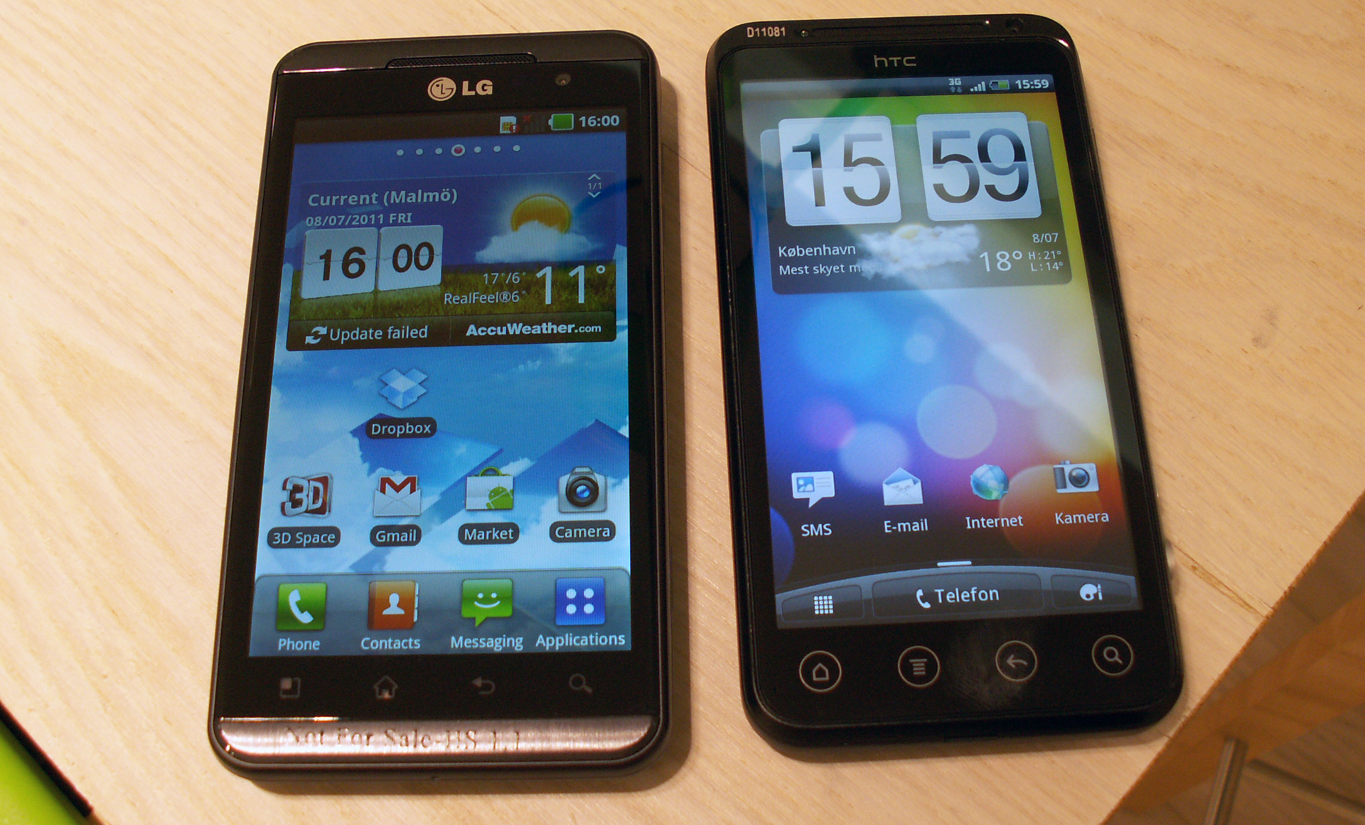 | Operativsystem | Android 2.3 med HTC Sense 3.0 | Android 2.2 (FroYo) med LG S Class |