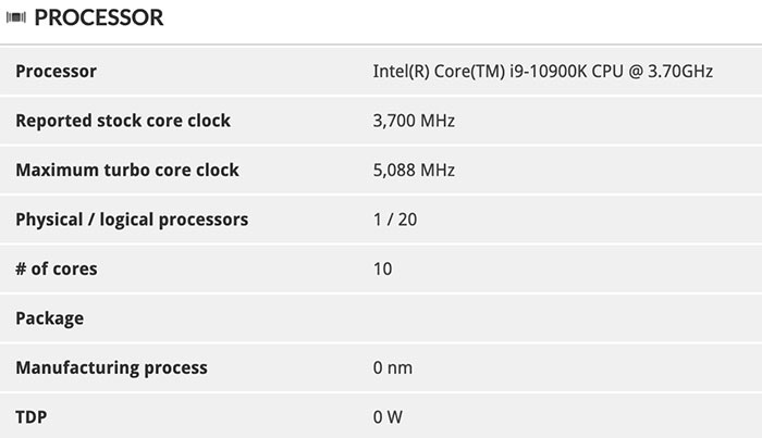Visar sig ovanstående skärmdump vara trovärdigt kan vi ha fått den första informationen angående Intels förmodligen sista flaggskeppsprocessor baseras på 14 nanometers tillverkningsprocess. 3DMarks databas listar Core i9-10900K som utrustad med tio processorkärnor och 20 trådar. Något som kan innebära att Intel känner pressen från AMD:s Ryzen-processorer och tar ännu ett steg framåt när det kommer till antalet kärnor i sina konsumentenheter.