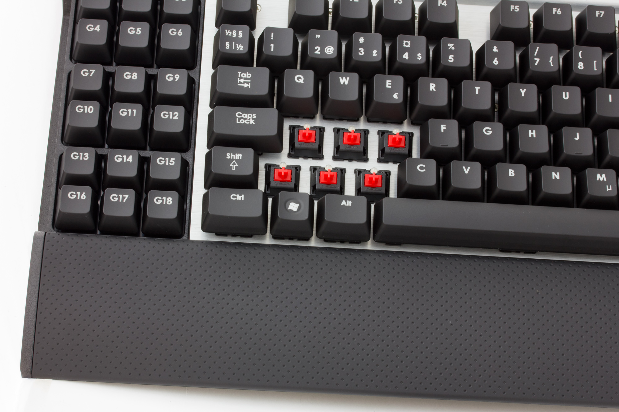 Corsair var mycket väl medvetna om båda sidors argument när de skulle tillverka sina Vengeance-tangentbord. Medan spelande var i fokus så ville de inte tappa kunder som också skriver mycket, så varken svarta eller blå brytare var riktigt passande. Så vad Corsair gjorde var att välja den mer ovanliga Cherry MX Red-brytaren. Brytaren, som idag tillverkas i väldigt små upplagor på grund av låg efterfrågan, är närmare identisk med den svarta brytaren, fast med lägre motstånd. På så sätt hoppas Corsair att målgruppen, spelare, ska få det som de ofta eftertraktar hos svarta brytare, men utan att de som också skriver ofta och mycket ska rygga tillbaka.