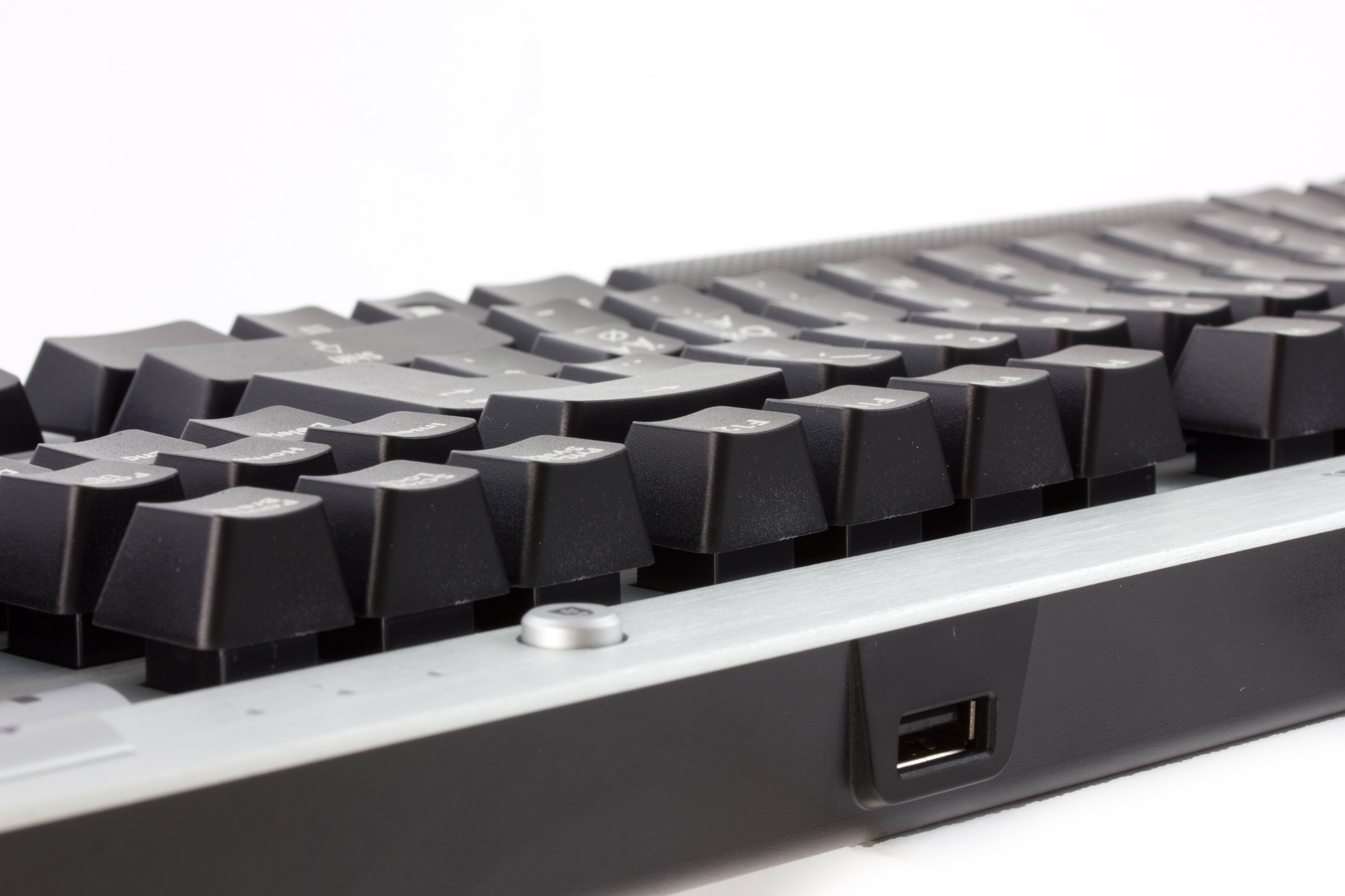 Först ut i rampljuset är flaggskeppet K90, som Corsair utvecklat främst med MMO-spelare i åtanke. Av denna anledning har de också utrustat tangentbordet med 18 makrotangenter på vänstra sidan. Här framträder dock två tydliga kvalitetsbrister med produkten. Det ena frågetecknet handlar om tangentbordsbasen under makrotangenterna, som är i svart plast istället för aluminium. Man kan anta att Corsair valde att göra just detta av rent utvecklingsekonomiska skäl för att kunna använda samma bas till både K90 och K60, med enbart mindre några extra hål borrade för de extra knappar på K90 som kontrollerar bakgrundsbelysning och profilval. Det ger dock en sämre kvalitetskänsla överlag.