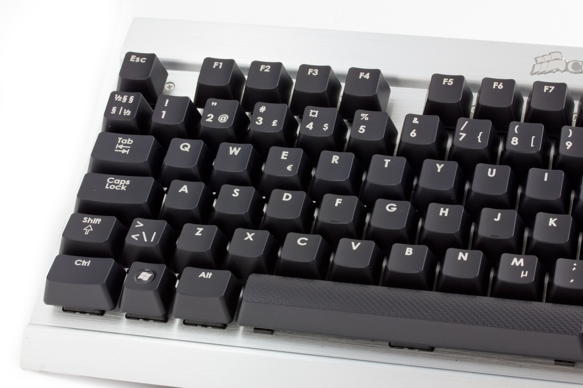 Vad Corsair istället valt att göra med både K60 och K90 är att låta de två övre komponenterna vara enbart en enda bit borstat aluminium. Det ger ett något annorlunda utseende än man är van vid från traditionella tangentbord, då botten på alla tangenter är exponerade. Att Corsair valt att göra så här har förmodligen med just de mekaniska brytarna att göra. Utan ett förbindande membran mellan alla tangenter finns mindre skada att göra just där, då all elektronik mellan brytarna enkelt göms bakom tangentbordsbasen, och i den viktigaste elektroniken finns under varje individuell tangent. En exponerad bas tillåter mer smuts att hitta ner under tangenterna, men i gengäld så är tangentbordet också mycket enklare att rengöra, och tangenterna är enklare att plocka loss. Metallen ger också tangentborden en gedigen tyngd och god kvalitetskänsla.