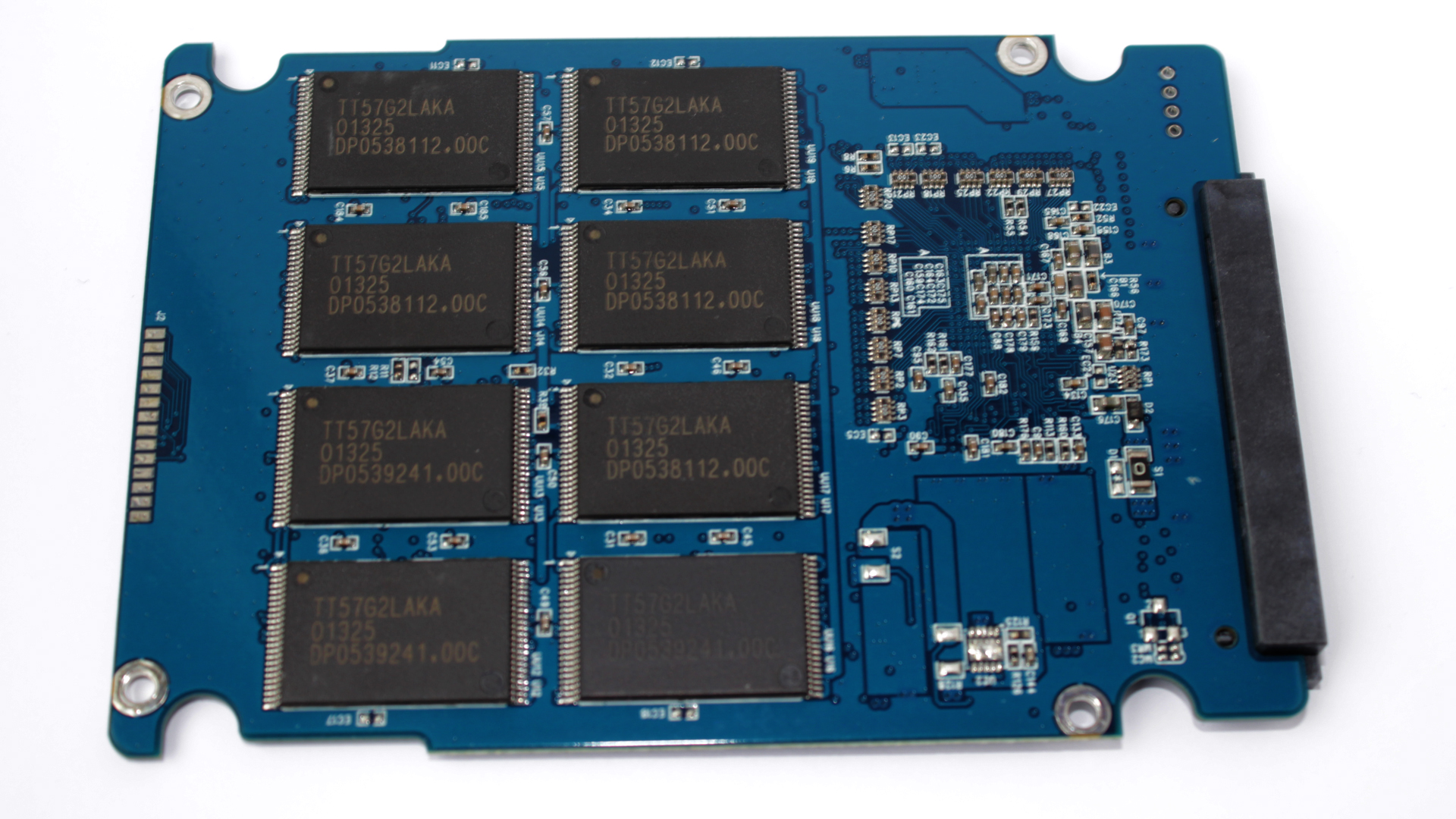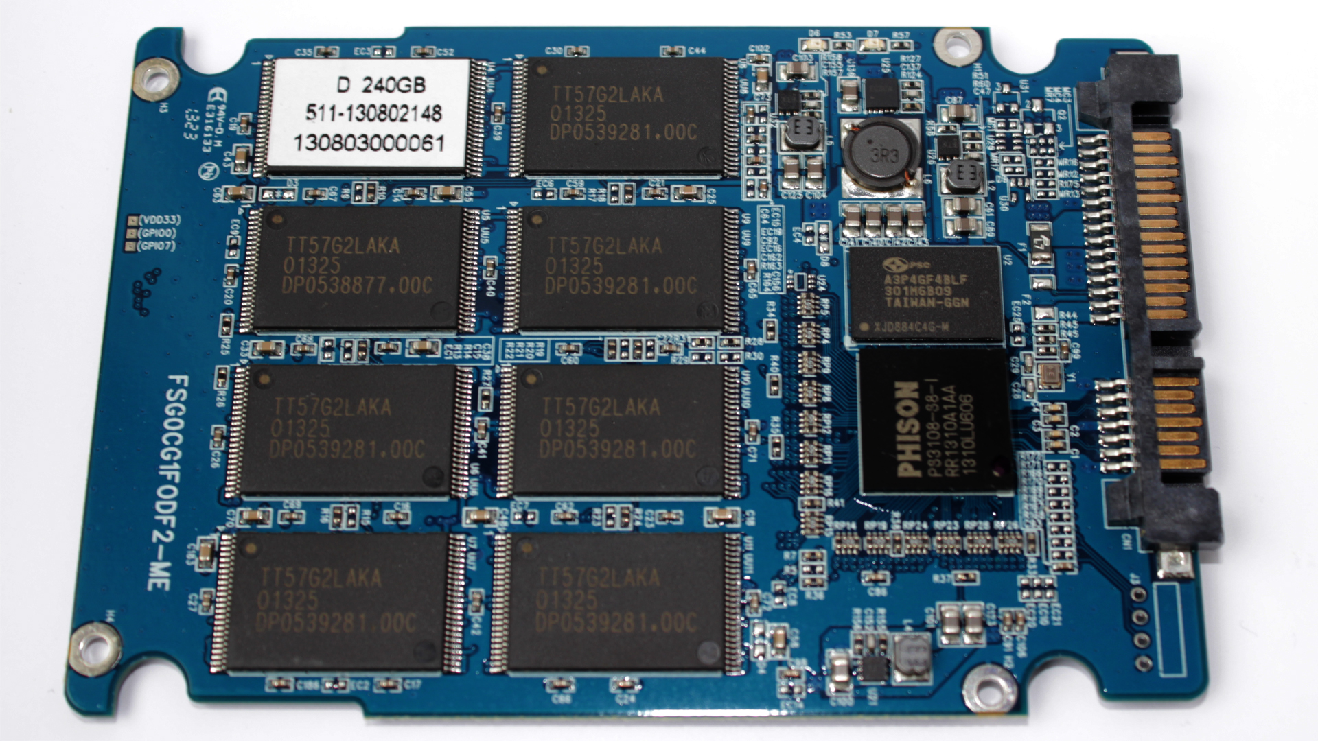 Inuti så hittar vi förstås en Phison S8 kontroller. I 240GB modellen hittar vi dessutom 16 stycken minneskretsar från Toshiba med artikelnummer TT57G2LAKA.120GB modellen har precis samma minnen men då endast 8 minneskretsar. Varje minneskrets huserar 16 gigabyte i lagringskapacitet. 16 chip ger en total kapacitet på 256 gigabyte. Likt många andra enheter så har man valt att anända en ganska stor del av enhetens utrymme for overprovisioning vilket borde ge bättre prestanda vidd tung belastning, men också lägre write amplification.