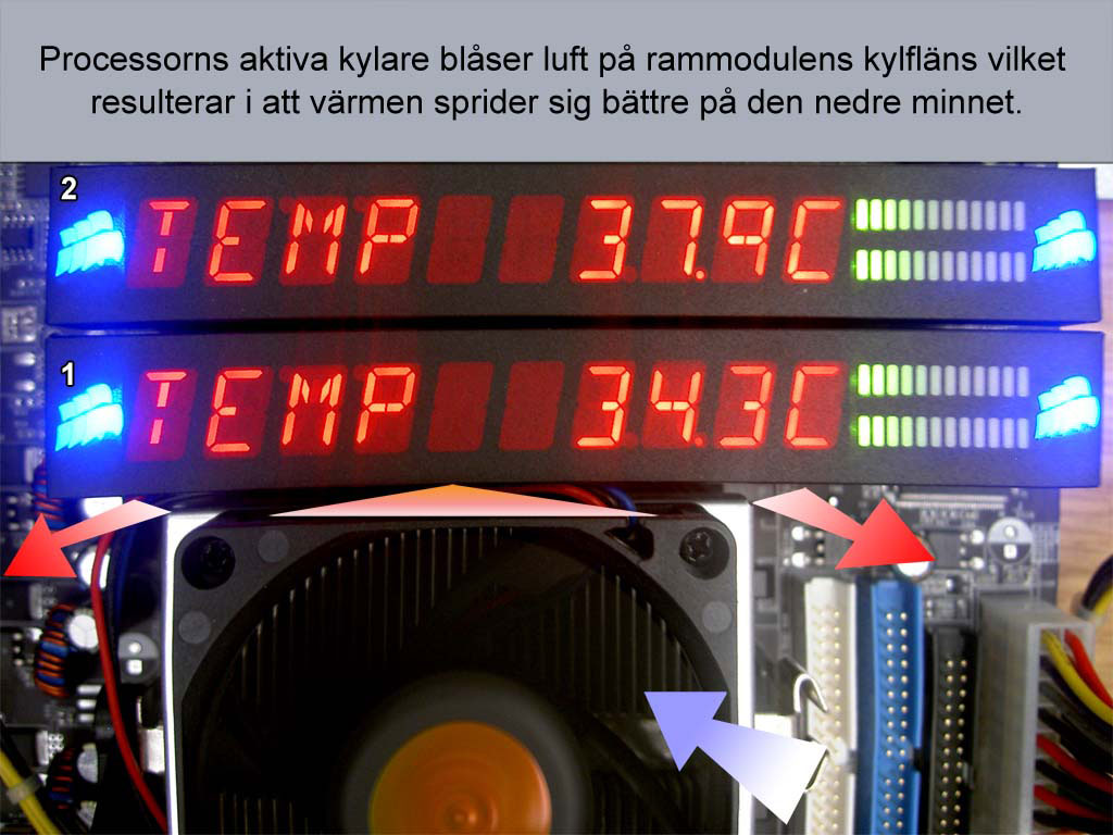 En ganska logisk förklaring på ett fenomen vissa användare kanske kan haka upp sig på. Vi gjorde även lite snabba tester, om än utan testresultat, där vi använde aktiv kylning (en fläkt över båda modulerna) och mycket riktigt sjönk temperaturskillnaden på modulerna markant.