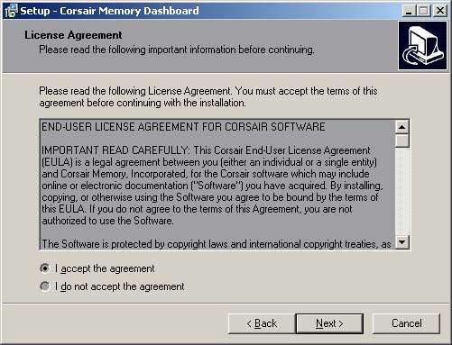 Det är en enkel installationsprocedur som också är väl dokumenterad av Corsairs i deras manual. När vi väl fått i minnesmodulerna och tillhörande Memory Dashboard är det så dags att installera mjukvaran som vi får med modulerna, detta är för övrigt första gången vi får mjukvara med ett par minnesmoduler.
