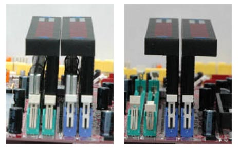 Här kan man klart se att dashboarden kan installeras antingen med vänster eller höger överhäng, och även går att använda tillsammans med vanliga minnesmoduler. Dock går det som synes inte att installera 4 Xpert-moduler med dashboard på grund av utrymmesbrist.