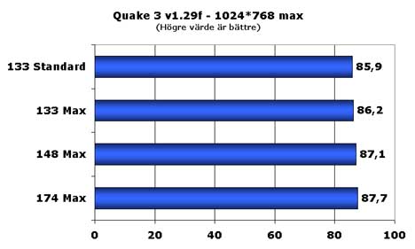 133 Mhz med standardinställningar, 133Mhz snabbaste inställningar,