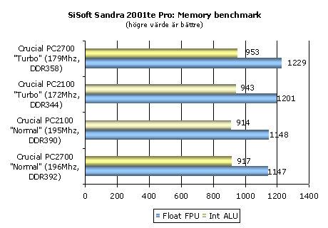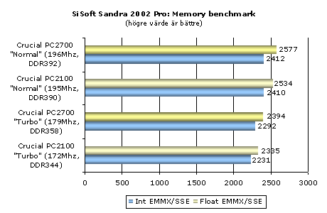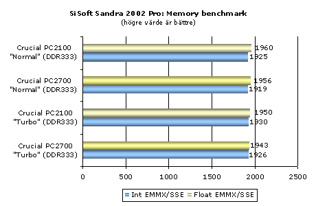 trots deras lägre minneshastighet. SiSoft Sandra 2002 har vi redan sett