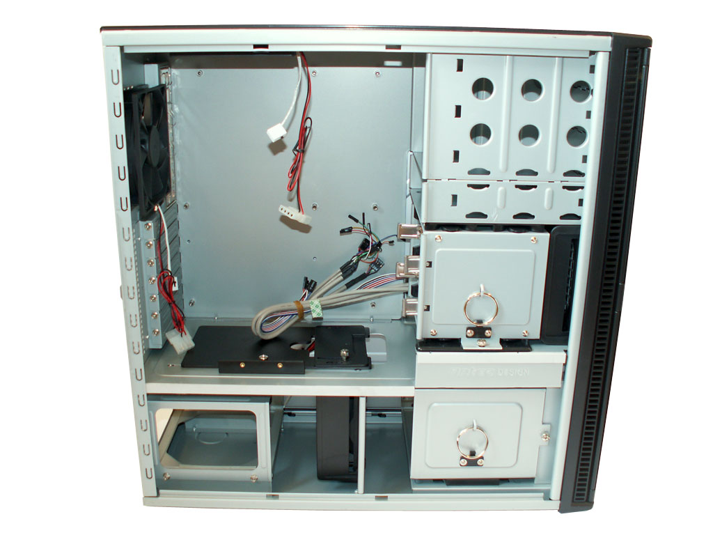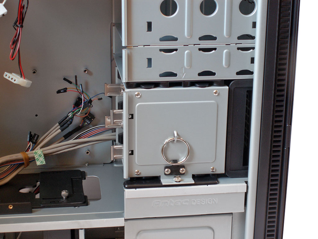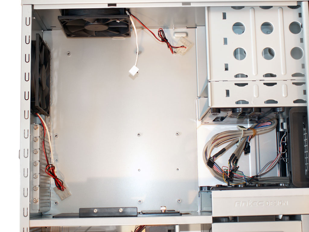 Väl inne i chassit kan vi först och främst se att Antec P180 är något annorlunda uppbyggt än vanliga chassi. Men det spelar mindre roll då många chassitillverkare använder sig av olika layouter för insidan av sina chassi nu för tiden. Men kan man bara grunderna går dem att använda i princip alla olika chassi. Först och främst valde vi att ta bort den extra fläkthållare som sitter riktad mot grafikkorten i datorn, något som i vilket fall är ett måste vid installation.