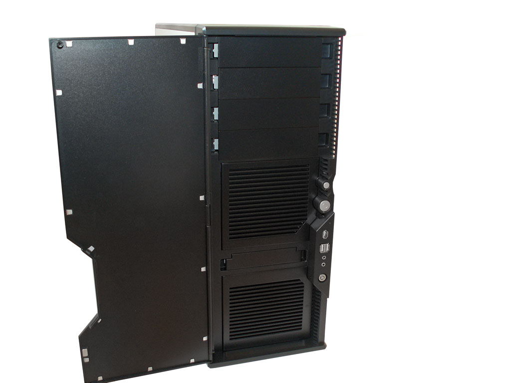 Det första man gör när man ska installera komponenter i chassit är såklart att öppna det och på vanliga tower-chassi är det oftast bara vänsterpanelen på chassi som behövs tas bort för att man ska komma åt inne i chassit. Panelen sitter med största sannolikhet fastskruvad och har man tur är det med tumskruvar, då krävs det bara ett fast handlag och ingen skruvmejsel krävs. På vårt Antec-chassi använder man tumskruvar för att fästa vänster sidopanel medan man har vanliga skruvar på den högra panelen vilket ni ser här nedan.